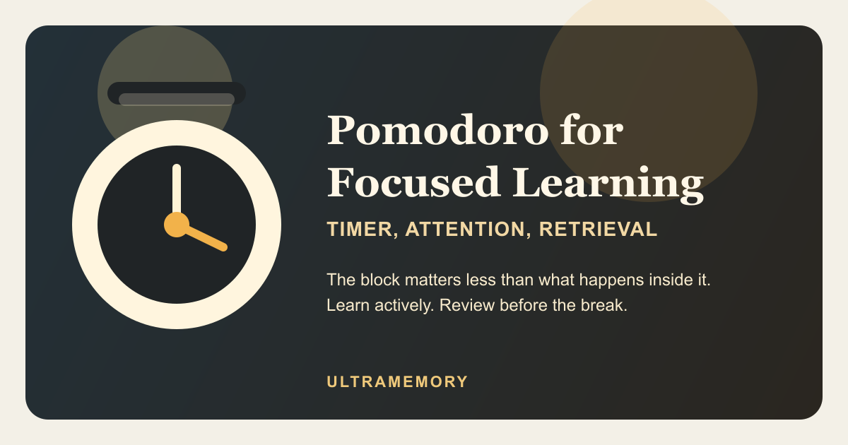 The timer is not the advantage. The advantage is a repeatable loop that turns attention into retrieval. If you want those learning blocks to compound instead of evaporate, turn the best ideas into review prompts and keep them alive with UltraMemory.